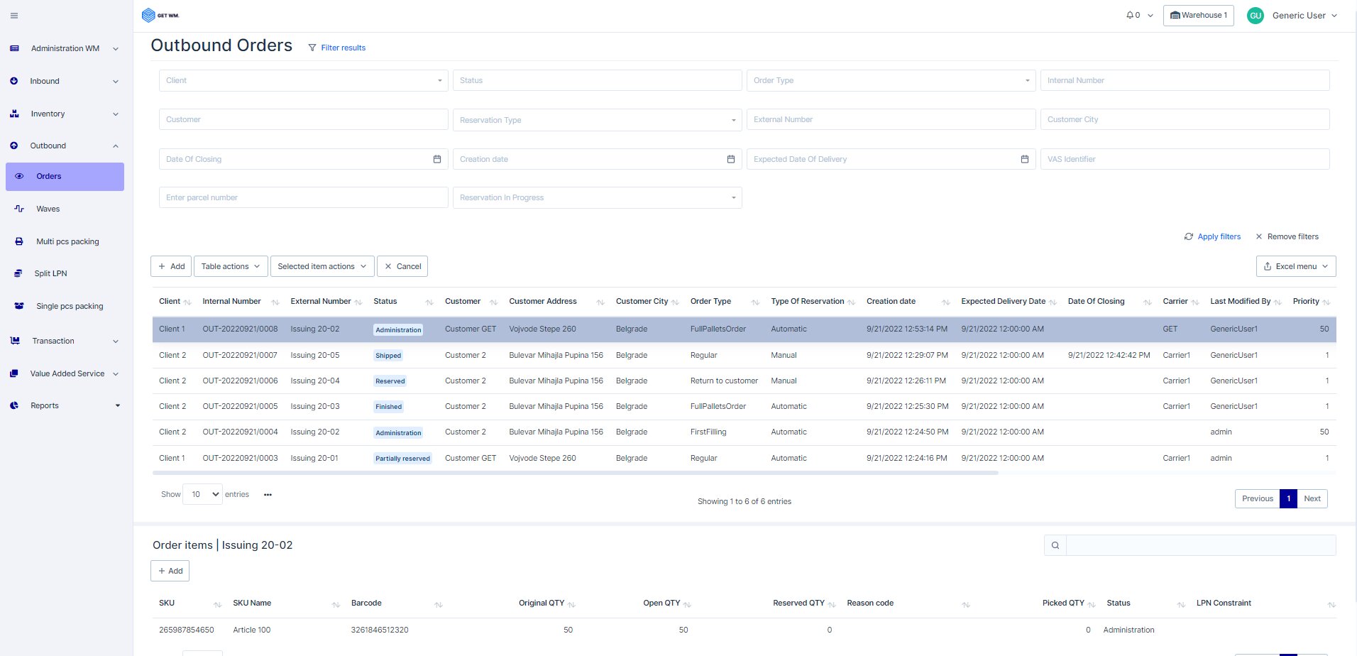 GET WM is a web-based WMS (Warehouse Management System) that allows managing the flow of goods and information in the Warehouse and Supply Chain and enables the digitalization and optimization of the business processes.