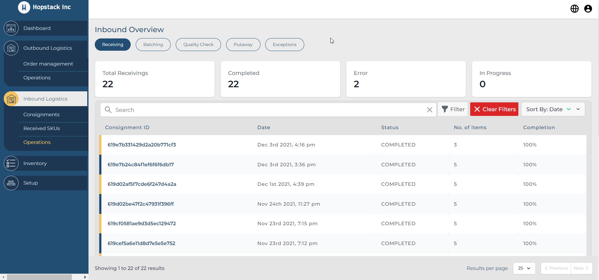 Hopstack WMS enables enhanced warehouse efficiency with guided receiving and putaway processes. The system supports FEFO and FIFO compliance by capturing critical data like expiry dates and inbound details.