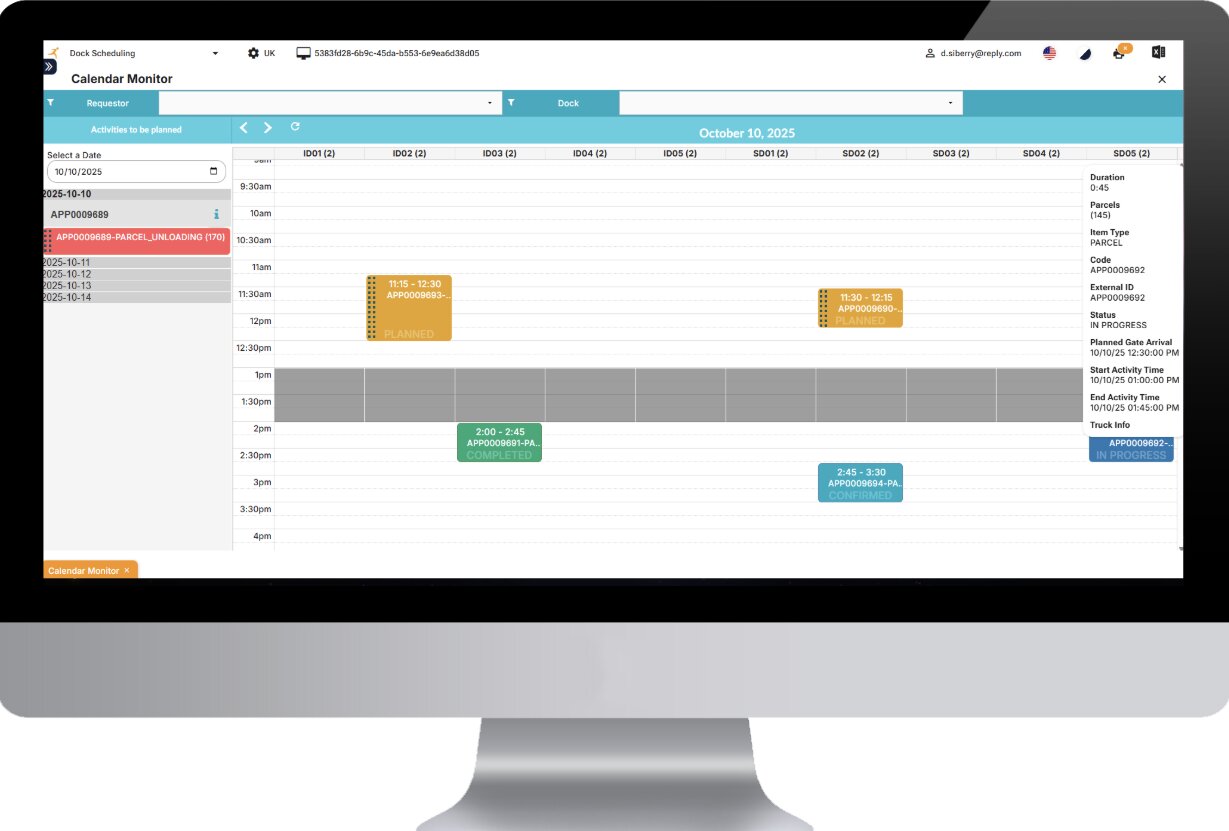 - Dock Scheduling: The collaborative solution to manage the distribution of loading and unloading appointments at warehouse docks via a cloud-based portal. Carriers and suppliers can make appointments based on dock availability and specific compatibility rules.