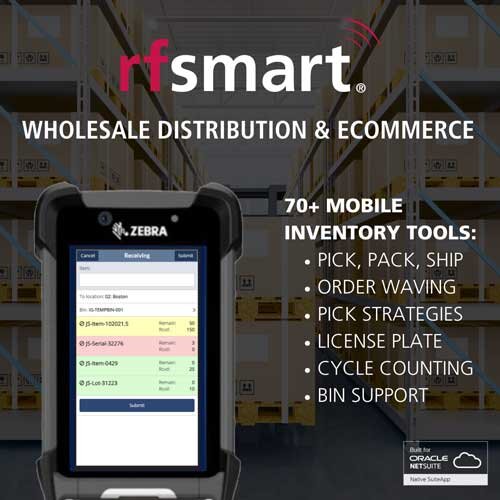 RF-SMART is a global leader in barcoding and mobile inventory management solutions for Warehousing, Wholesale Distribution, Manufacturing, Retail & eCommerce. RF-SMART Leverages barcodes and data collection technology to automate business processes so the production, movement, management and fulfillment of inventory is fast and accurate. RF-SMART integrates directly with ERPs as a WMS for NetSuite and inventory management for Oracle Cloud SCM. As a mobile scanning Warehouse Management System (WMS), RF-SMART gives you real-time visibility into your operations and full traceability from the receiving process all the way through delivery.