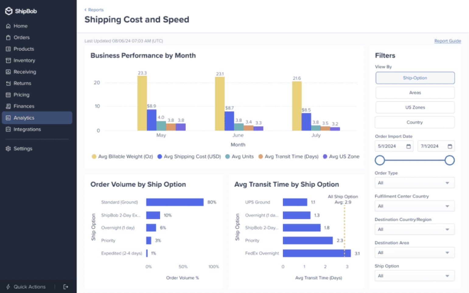 The interface is designed for non-technical users, with most configuration handled through ShipBob’s support and onboarding teams rather than through in-app customization.