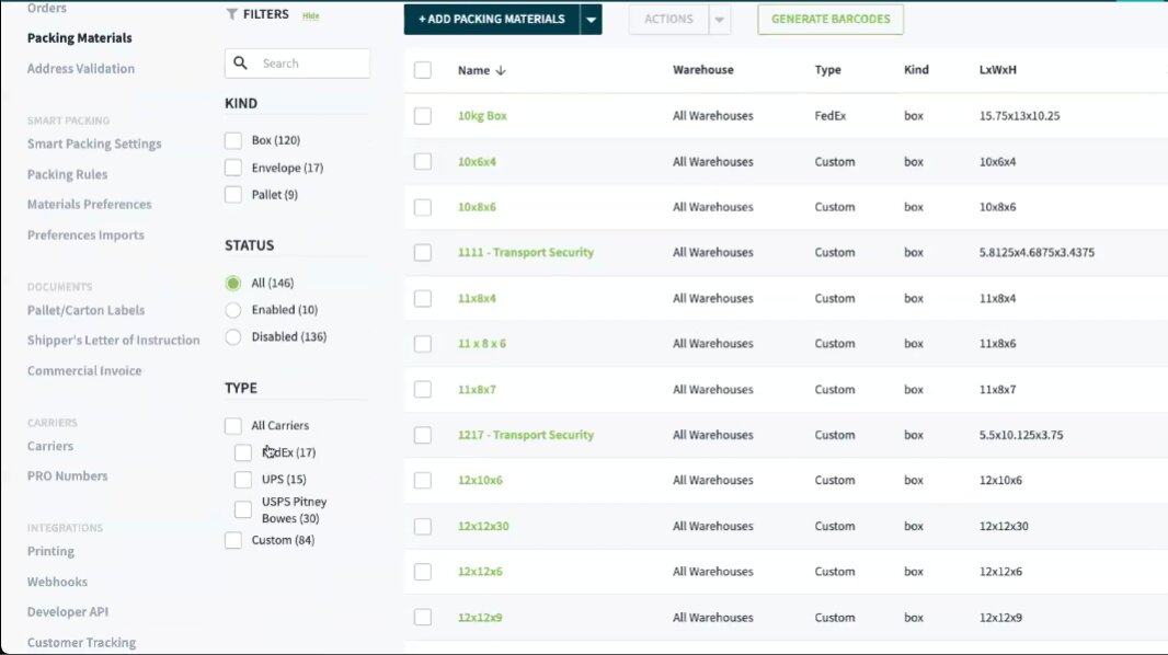 - Multi-carrier rate shopping, automated cartonization (smart packing), and shipment booking.