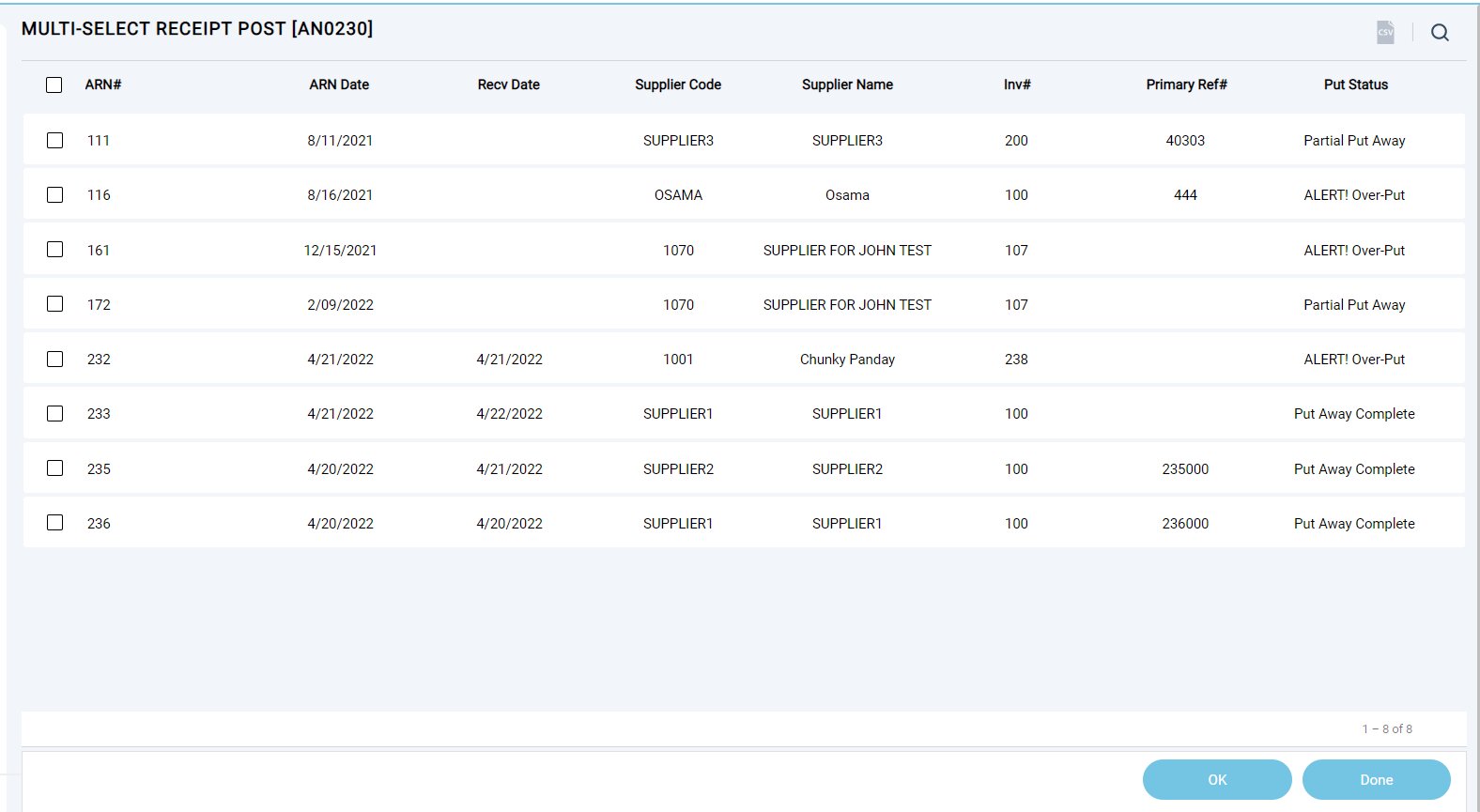 - Receiving & Putaway