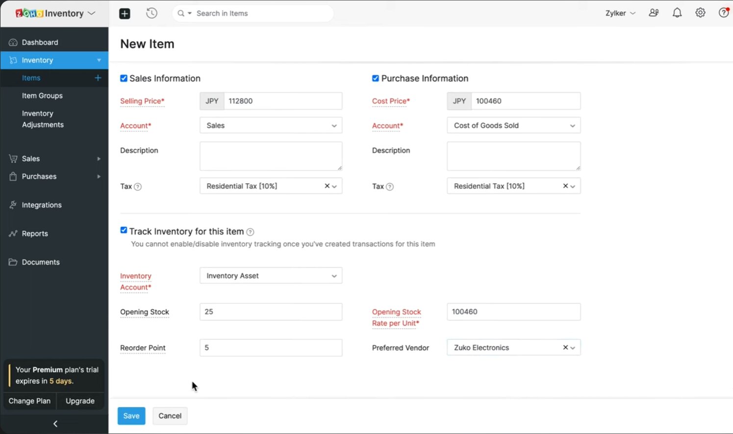 Zoho Inventory has a free plan and several paid tiers (Standard, Professional, Premium, Enterprise). Paid plans are available on a monthly or yearly billing cycle and include a 14-day trial for paid tiers; certain advanced features (custom modules, record locking, etc.) depend on plan level.